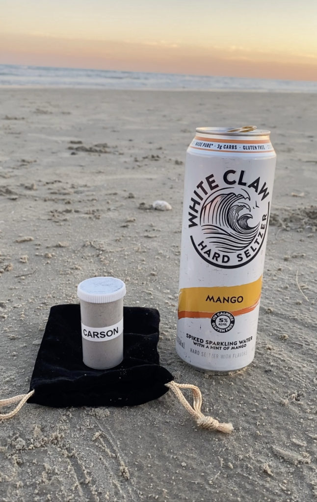 A week after the funeral, I took a trip down to Texas for a work conference. I made my way to Mustang Island, a beautiful beach community along the Gulf Coast. I sat on the beach with Cory’s bottle of ashes, had a drink and then walked into the ocean with him.